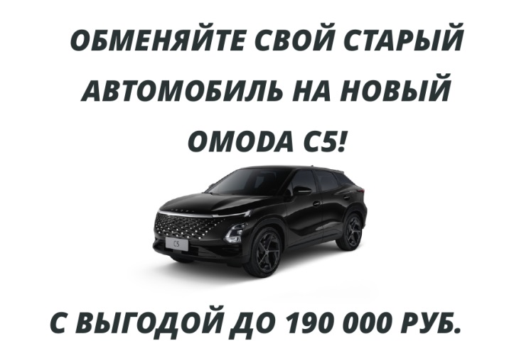 Покупайте автомобиль OMODA C5 в июле с выгодой по Trade-in до 190 000 рублей.